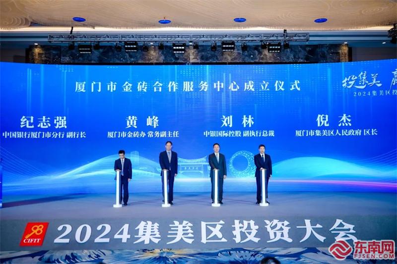 厦门市金砖合作服务中心成立仪式(主办方供图) 数据 达成投资额400.5亿元 本次投洽会期间,集美区共达成合作58个,达成投资额400.5亿元。其中,有33个项目参加大会现场签约。本次签约项目聚焦科技创新和美好生活两大重点产业发展方向,锚定服务新质生产力、服务企业出海等重点目标,围绕五创、五美细分领域,充分发挥集美基金金融资本优势,逐步推动产业聚链成群、集群成势,增添集美区发展新动能。 大会上,集美区产业促进基金正式启动投资,并向芯瞳半导体交付首笔投资款。未来,集美区产业促进基金将秉持设立初衷,发挥好市场资本力量,精选企业、优选项目,助力集美科技创新和产业创新。 由厦门市金砖办、集美区政府、中国银行厦门分行、中银国际共建的厦门市金砖合作服务中心在大会上举行成立仪式。该中心将践行“金砖+”合作理念,发展更紧密、更广泛、更全面的战略伙伴关系,推进“金砖+”务实合作,将集美打造成为中国企业走向金砖国家的“出海口”以及海外资本和技术走进中国的“入海口”。 |