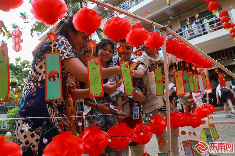 16日晚,华侨大学厦门校区邻里文化市集“侨光印月”活动现场,来自世界不同国家和地区的学生欢聚一堂,“沉浸式”体验中秋民俗,共庆中秋佳节。