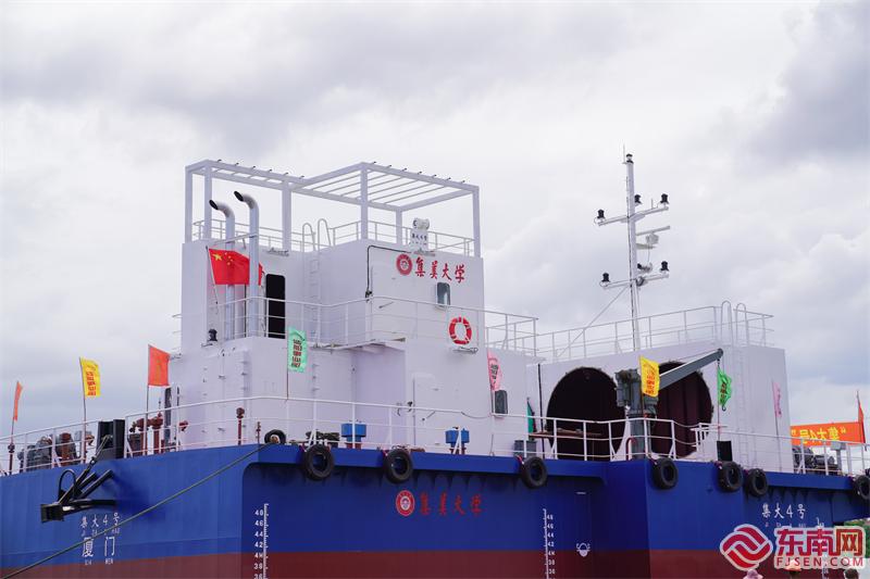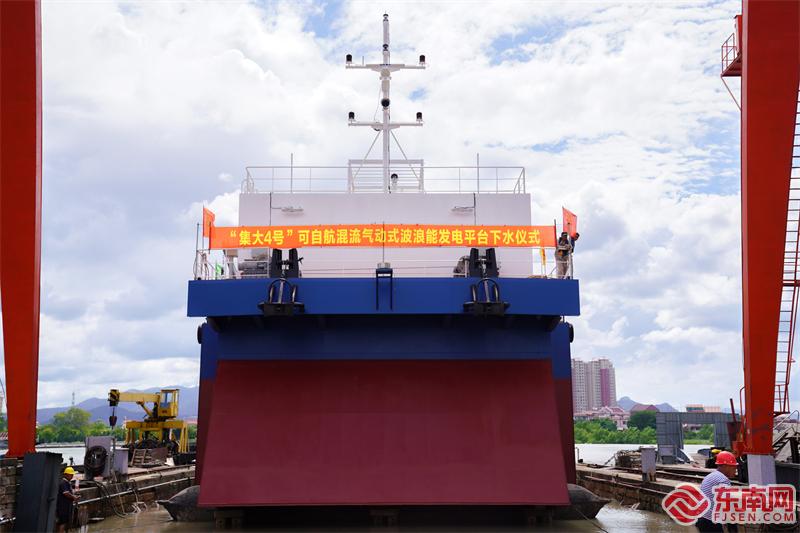 “集大4号”可自航混流气动式波浪能发电平台下水仪式(陈凌 摄) 东南网9月20日讯(记者 李霖 通讯员 涂勇强)9月20日,国内首套发电功率达到100千瓦并通过中国船级社(CCS)审核认证的可自航波浪能发电平台——“集大4号”可自航混流气动式波浪能发电平台成功下水。 据悉,“集大4号”是集美大学海洋装备与机械工程学院杨绍辉教授团队的科研项目,拥有多项独立知识产权核心技术。“集大4号”总长21.60米,最大船宽13.25米,型深6.00米。该平台的俘能装置、能量转换装置、控制系统均为集美大学海洋可再生能源装备开发团队自主研发,能够高效地俘获波浪能,并具有更宽的波浪响应频带宽度,提高了波浪能的转换和传递效率。此外,该平台还配备了完整的油电混合驱动装置、舵机和驾驶装置,能够以一定航速自由航行于海面,灵活前往任何需要的海域进行发电,且具备有效躲避台风的能力。 自2010年以来,集美大学海洋可再生能源装备开发团队深耕海洋能装备开发领域,已有5款装备成功参与海试,其中“集大1号”“集大2号”和“集大3号”三款波浪能发电装备在国内波浪能利用领域具有一定影响力。“集大4号”平台下水后,将在福建省沿海海域展开实海况实验,采集海试数据,有望推动我国波浪能开发利用技术,为国民经济建设和国防建设贡献重要力量。