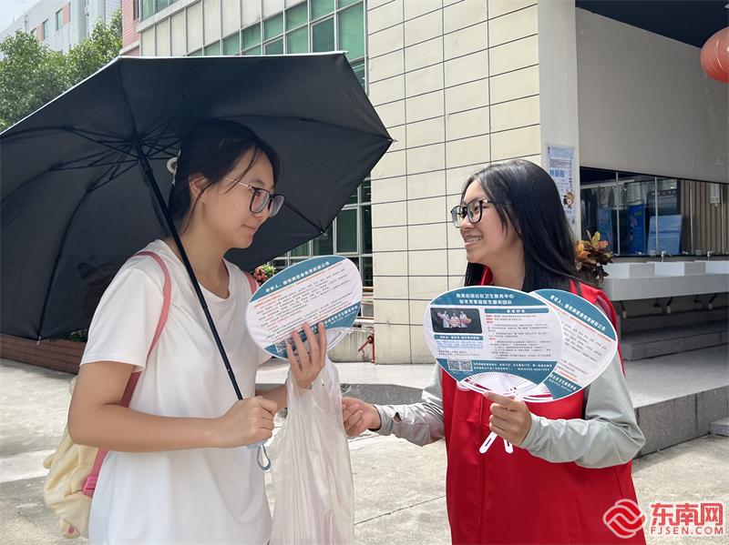 志愿者分发宣传扇子,普及健康知识(东南网记者 李霖 摄)