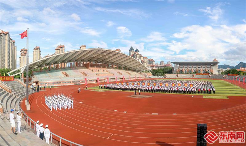 升国旗仪式在集美大学庄重文夫人体育场举行(集美大学供图)
