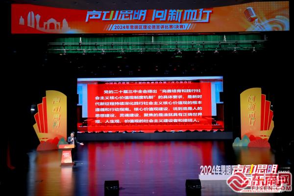 2024年思明区主题微宣讲比赛(决赛)现场(主办方供图) 东南网10月1日讯(记者 刘玮)9月29日下午,“声动思明 向新而行”——2024年思明区主题微宣讲比赛(决赛)在思明区青少年宫“小飞鹭”剧场举行。 比赛由中共厦门市委讲师团指导,中共思明区委宣传部、共青团思明区委员会主办,思明区融媒体中心、思明区新时代文明实践中心承办。旨在深入学习贯彻习近平新时代中国特色社会主义思想,全面贯彻落实党的二十大精神和二十届三中全会精神,推动党的创新理论“飞入寻常百姓家”。 从前期的人员选拔、赛程设置到最终的宣讲PK,比赛各个环节之间环环相扣,不断创新。在人员选拔上,注重从基层一线选拔优秀宣讲员。他们当中有退役不褪色的退伍老兵,有躬耕一线的人民教师,有扎根基层的社区网格员等;赛程设置上,创新融合“情景表演+即兴宣讲pk”形式,将宣讲融入情景剧中,以沉浸式、互动式的表现方式,让在场观众感受日新月异的新思明,同时通过即兴宣讲,以赛代训,全方位考查参赛选手的理论功底、逻辑思辨能力和临场应变能力;宣讲主题上,不断深化岗位实践。内容涵盖非遗传承、党建引领、生态文明建设、基层治理等方方面面的民生大事。 |