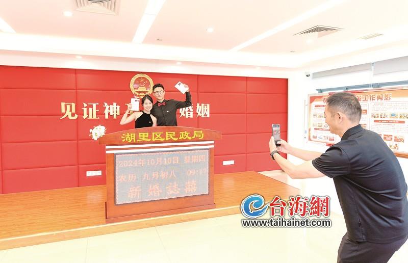 东南网10月11日讯(海峡导报记者 钱玲玲/文 沈威/图)执子之手,与子偕老。昨天是10月10日,寓意“十全十美”的好日子,许多新人选在这一天登记结婚,携手开启共同的人生新篇章。 有人手捧鲜花,有人披上头纱,有人深情款款,有人幸福满溢……昨天上午,在备受年轻人喜爱的“网红打卡点”湖里区婚姻登记处,新人们开心地展示刚刚领到的“红本本”,现场争相合影留念,仪式感满满。 一见倾心,两情相悦,十全十美,百年好合。据厦门市民政局的统计,昨日全市共有242对新人登记结婚,其中,思明区52对、湖里区50对、集美区55对、海沧区28对、同安区31对、翔安区26对。这一天,幸福拉满,甜度爆表! 从西北角到东南角横跨大半个中国的爱情 “为你写诗,为你静止,为你做不可能的事。为你弹奏,所有情歌的句子……”这首歌,唱的就是孙先生和陈小姐的爱情故事。 他在西北角的青海,她在东南角的厦门,远隔祖国两端的他们,因为共同考上了集美大学,相遇在了这座美丽的海滨小城。 在学校社团,他们第一次见面,美丽活泼的陈小姐出现的那一刻,孙先生感觉一见倾心。后来,在陈小姐生日那一天,孙先生抱着一把吉他,为她唱歌。 那一刻,浪漫被具象化了,两颗年轻的心慢慢地越走越近。孙先生偷偷写了很多明信片,收在一个盒子里。2016年的一天晚上,他带着这盒明信片,和一封长长的手写信,向陈小姐表白。“写了很久,一直没有寄出。所以,那次表白是蓄谋已久!”说自己“嘴笨”的孙先生,把满心的话都写成了文字。如此复古的表白方式,令陈小姐惊喜不已。10月10日那天,当孙先生再一次表白时,陈小姐终于甜蜜地点了头。 后来,两人又一起考上了华侨大学的研究生;如今,陈小姐已经工作,孙先生则继续在厦门大学攻读博士。8年的爱情长跑,终于在这一天修成正果,双方父母也特意赶来,见证这对新人的神圣时刻。“那封信,我还一直留着,那是我们爱情的见证!”陈小姐开心地说。这一天,她手捧鲜花,嫁给了从前的那个少年。 为她跑了四五家花店精心挑选一束手捧花 刘小姐抱着一束花,安静地站在一旁,等待打卡拍照。 就在前一天晚上,曾先生跑了四五家花店,才终于选定了这束花。“结婚是一生一世的大事,我应该要多用心才是!” 这是她喜欢的花,更是她喜欢的人为她精心准备的花。这一刻,幸福翻倍。 曾先生和刘小姐的老家,是接壤的两个县。他是龙岩漳平人,她是三明大田人,相距2个多小时路程。今年春节,正月初二,曾先生的表弟来走亲戚,偶然间提起了一个朋友:“你俩刚好都在厦门工作啊!” 于是,表弟牵线,元宵节那天,曾先生和刘小姐相识了。“我们特别聊得来,性格也很合拍,很快就走到一起了,所以我还是挺相信缘分的。”曾先生甜蜜地回忆着。 10月4日,他们订婚了。昨日,曾先生特意穿上订婚时穿的衣服,领着刘小姐来登记结婚,共同迎接新生活。“今天这个日子是我特意选的,十全十美嘛!但是人其实没有十全十美的,很多事情需要互相去包容,遇到问题要多沟通,才能长长久久地走下去。”曾先生幸福地说。 |