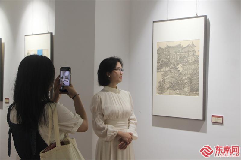 观众在展览作品前留影(东南网记者 李霖 摄)