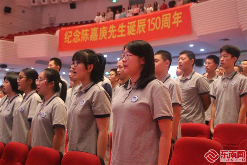 参会学子齐唱《集美学校校歌》(东南网记者 李霖 摄)