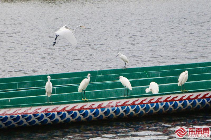 白鹭悠然停落在龙舟上(东南网记者 李霖 摄)