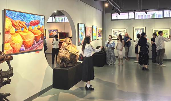 东盟文化艺术创作季(第五季)展览现场。(林志杰 摄) 来自16个国家的162位艺术家带来近200幅书画作品,呈现一场东西交融、异彩纷呈的文化盛宴。10月25日,“联通丝路 印象侨乡”东盟文化艺术创作季(第五季)国际展在东盟文化经济交流中心开幕。 活动作为深入践行习近平文化思想和习近平总书记在福建、厦门考察时重要讲话精神的具体举措,由中国文联国际联络部指导,省文联、市文联、集美区委宣传部联合主办,省文学艺术对外交流中心、省美术家协会、省书法家协会、集美区文联、集美区东盟文化经济交流中心等承办。 菲律宾驻厦门总领事馆总领事欧莉娜,泰王国驻厦门总领事馆副总领事冰忆莲,省文联党组书记、书记处书记、副主席王秋梅,市文联党组书记、副主席陈影,区领导庄志辉、江彩蓉、郑小妍、黄云茜,以及省、市、区相关部门领导和中外艺术家代表等出席开幕式。 省文联首次参与主办 进一步提升活动品质扩大影响力 “今年的作品数量多、质量高,首次由中国文联国际联络部指导,省文联参与主办,参展的海外艺术家就有超过60位。中国的参展艺术家中有不少名家,其中包括多位省美协、省书协主席团成员。今年还首次设置了表彰优秀作品的‘白鹭奖’,共有海内外7件作品获奖。”主办方负责人介绍,参展作品种类多样、题材丰富,反映了海丝共建国家的人文特色,见证了中华文明流播四海的过程。 “这组作品以自行车为创作题材,寄托了对爸爸的回忆和情感。”站在名为《相遇》的水粉画作前,来自马来西亚的水彩画家曹振全用中文为大家介绍。曹振全祖上是广东客家人,他的父亲年轻时移民马来西亚,在乡下辛勤经营一家杂货铺。“小时候总是看父亲骑着自行车送货,我长到十多岁也开始帮他送货、卸货,关于父亲的记忆里总有一辆自行车。”曹振全说,虽然自己一直在海外生活,但从小家里就教中文,他所居住的雪兰莪州有许多福建华侨,因此还耳濡目染学会了闽南语。他说,到了集美感觉很亲切,这里的老建筑很漂亮,希望能多在这里走走看看,碰撞出新的创作灵感。 据悉,本次展览还将积极“走出去”,计划于12月赴泰国、柬埔寨展出本次展览的优秀中国书画作品,并组织福建代表团开展走访交流、艺术采风等活动,进一步推动中外文化交流与合作。 发挥侨乡、校友优势 集美积极拓展东盟“朋友圈” 2024年是“中国—东盟人文交流年”,也是“东盟文化艺术创作季”第五届活动。此次活动是省委宣传部“2024年度海丝文化交流项目”入选活动,规格之高、精品之多、影响力之广为历届之最。 据悉,东盟文化艺术创作季国际展览交流活动于2019年创办,前四季共展出来自20多个国家的约300位艺术家的近900幅原创作品,在海内外产生了广泛影响。 王秋梅在致辞中表示,本次展览活动深入践行习近平文化思想,贯彻落实习近平总书记来福建考察重要讲话精神,以艺术为桥、书画为媒,汇聚东盟各国、海丝共建及相关国家艺术家的精美书画作品,既呈现中华文化、福建文韵的风采和魅力,也展现各国艺术的创新和多元化,不仅是一次跨越国界的艺术交流与展示,更是一次文化的对话与融合。 中国与东盟国家山水相连,集美作为嘉庚故里和著名侨乡、教育重镇、文化强区,近年来更是以嘉庚精神为旗帜,以广大侨胞、集美校友为纽带,在文化、经济等领域积极拓展与东盟乃至“一带一路”共建国家的交流合作,不断提升人文集美的海外美誉度和影响力。 近年来,集美区大力支持东盟文化经济交流中心的建设和发展,先后打造“东盟文化艺术创作季”“厦门—中菲音乐之声”“中泰艺术精品联展”“厦门—泰国电影周”“福建·东盟电影文化周”等多个国际文化交流品牌,支持建设“厦门市海外投资贸易服务泰国联络点”“东盟文化经济泰国海外联络服务站”“东盟嘉庚职业教育中心”等,为推动民间经贸、文化、教育等领域的交流合作发挥积极的桥梁纽带作用。 此外,集美区还积极举办集美·阿尔勒国际摄影季、海峡两岸青春影展、海峡两岸(集美)龙舟赛等活动,推进华侨大学国家语言服务出口基地建设,持续传承弘扬以嘉庚精神及华侨文化、闽南文化、学村文化为核心的“一精神三文化”,为厦门“建设具有一定国际影响力的流行文化中心”添砖加瓦。(记者 应洁 林志杰 来源:集美报) |