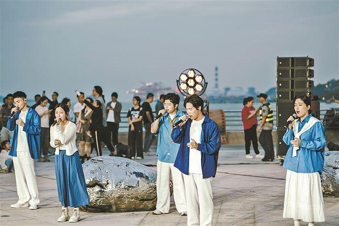厦门日报讯(记者 邬秀君 林铭鸿 摄影报道)吹着凉爽的海风,伴随日落,欣赏一场经典电影歌曲的快闪表演……昨日傍晚,由厦门市电影局、思明区委宣传部联合主办的“一路星光一路歌”2024星光海岸电影音乐活动,在演武大桥观景平台“金鸡百花星光海岸”举办。 此次电影音乐活动,主办方特地邀请了厦门吉岛合唱团、吉岛少儿合唱团、醒耳人声乐团,共同演绎经典电影音乐,打造厦门海滨特色的电影音乐现场,展现厦门“电影之城”的文化氛围,使“金鸡+厦门”的影城融合更加深入,进而拉近电影艺术与生活的距离,为市民游客带来不一样的电影文化体验。 现场,表演嘉宾通过合唱和阿卡贝拉的形式,带来多首经典影视音乐表演。随着一首首经典旋律飘荡在观景平台,现场聚集了越来越多市民游客,哼唱着加入合唱。最后,活动在电影《我和我的祖国》主题曲《如愿》的大合唱中圆满落幕。 “在这么美的观景平台,看这么精彩的一场演出,感觉太棒了。”从潮州来厦旅游的“00后”姑娘张璇说,“我经常在热播剧中发现厦门的地标景点,厦门是名副其实的影视之城了。”得知今年的中国金鸡百花电影节将在下周举办,她一脸兴奋地表示,下周还要来厦“追星”。家住厦大西村附近的市民钟威说,希望电影节期间能多办这样的活动。 此次电影音乐活动相关负责人表示,作为2024年中国金鸡百花电影节暨第37届中国电影金鸡奖的预热活动,此次电影音乐活动旨在让广大市民游客感受电影文化以及厦门“电影之城”的魅力。 |