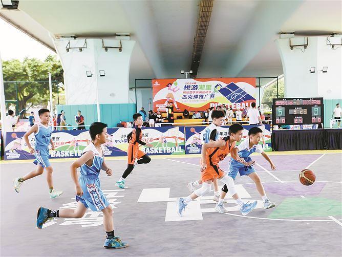 昨日,湖里区中小学生篮球锦标赛在刚开放的五缘湾桥墩体育公园开赛。 项目名片 位于五缘湾大桥下,毗邻湖里区环岛慢行道“蓝丝带”,总占地面积约4420平方米,包含1个五人制足球场、1个板式网球场、2个标准篮球场及1个滑板碗池场地,满足不同户外运动爱好者的需求。 厦门日报讯(文/图 记者 庄筱婧)五缘湾大桥下,滑板爱好者们有属于他们的碗池场地啦!昨日上午,五缘湾桥墩体育公园正式向公众开放,2024年“悦游湖里”之悦动四季休闲运动节开幕式也同步举办。 “终于盼到属于我们的专门场地了!”滑板爱好者小林说,碗池一“上新”,这个消息就在他们的微信群里传开了。 湖里区文旅局说,该体育公园所在的桥下滨海风光优美,但空间此前一直处于闲置状态。为了盘活城市资源,满足周边市民户外运动健身的日常需求,湖里区结合湾区的自然条件与地理优势,将五缘大桥下的空间打造为集运动、休闲、观景于一体的现代化体育公园。 昨日,伴随着2024年“悦游湖里”之悦动四季休闲运动节启动,第一场匹克球推广赛在五缘湾桥墩体育公园开赛。今年的赛事以羽毛球混合团体赛、匹克球推广赛和电子竞技巅峰赛为主。 2024年湖里区中小学生篮球锦标赛、2024年第九届“禾山杯”海峡两岸社区足球赛暨海峡两岸交流赛等一系列运动赛事也在这里正式拉开比赛帷幕。 |