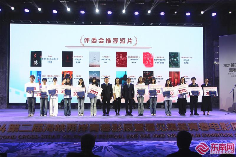 两岸青春影人齐聚一堂(东南网记者 李霖 摄) 东南网11月12日讯(本网记者 李霖)11月12日下午,2024第二届海峡两岸青春影展暨看见集美青春电影展颁奖仪式在厦门集美举办。两岸影视界专家、企业代表、高校师生及青年影人共400余人齐聚一堂,携手开启光影之旅,探索电影艺术魅力。 本届影展由福建省电影局指导,福建省文学艺术界联合会、厦门市集美区人民政府、厦门市电影局、厦门市两岸交流协会、台北市影音节目制作商业同业公会、台湾电影制作发展协会主办,中共厦门市集美区委宣传部、福建省电影发行放映协会、福建省电影家协会、厦门市集美区文学艺术界联合会承办。 多元创作展现青春力量 23部优秀作品获奖 作为金鸡百花电影节配套活动,“看见集美”青春电影展自2019年策划举办以来,逐渐成为集美的一张亮丽文化名片。2023年,影展经批复升级为“海峡两岸青春影展”,目前已是集美区对外交流的重点项目。本届影展以“潮起两岸 映像青春”为主题,旨在挖掘、汇聚青春影人、两岸影人的力量,共同探讨两岸青年电影的新机遇。 自今年7月第二届海峡两岸高校短片大赛征片活动全面开启以来,主办方共收到了来自168所海峡两岸高校、国外高校的965部参赛作品。短片内容涉及多种题材,语种多达42种,投递总数较上一届增长了61%。 经过层层遴选,23部优秀作品脱颖而出。这些作品在故事表达、视听表现和人文关怀等方面均表现突出,展现了多元化的创作特点。活动现场分别为获得“评委会最佳短片”“评委会荣誉短片”“评委会潜力短片”“评委会推荐短片”及“集美题材短片”的主创团队颁奖。 “在短片这个赛道更需要有这样的影展,为我们两岸青年影人提供交流经验、增进彼此了解的平台。”评委会最佳短片、北京大学选送作品《离原》的主创团队代表徐泓钰告诉记者。评委会潜力短片、台湾义守大学选送作品《榴梿芭》的主创人员庄时俊表示,通过此次活动,他看到了来自不同地区作品的影片风格、叙事角度及各自独特的魅力,“大家互相交流,让我们的创作之路可以越走越远。”