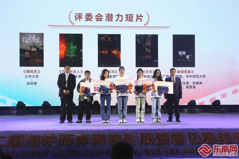 “评委会荣誉短片”(东南网记者 李霖 摄) 紧抓两岸融合发展优势 为青年影人提供“集美机会” 青春光影,情系两岸。集美区不仅是厦门重要的影视产业聚集区和拍摄取景区,还是全国唯一拥有两个国家级台商投资区的行政区、省级两岸融合发展县域集成改革试点区。2019年, 随着活动规格的提升,集美影视人的“事业圈”和“朋友圈”不断扩大,活动的专业化、品牌度和业界影响力也不断增强。作为中国金鸡百花电影节系列活动之一,本届影展持续紧抓两岸融合发展优势,深入挖掘集美影视文化资源,充分利用集美文教区优势,通过一系列活动为两岸青年电影人作品孵化创造良好生态,为广大青年提供更多更实的“集美机会”。 “我们鼓励两岸青年通过影像记录历史、分享故事,将风土人情与闽台文化融入电影艺术,共同用电影镜头聚焦两岸人民血浓于水的深情、亲情。”集美区委副书记、区长倪杰致辞表示,集美将充分发挥青年聚集、产业汇集优势,把海峡两岸青春影展办好办强,办出品牌,为两岸青年影人提供多维度的交流平台。 台北市影音节目制作商业同业公会理事长陈仲祺表示,青春影展为年轻人提供了肥沃的土壤,让他们在这里展示了蓬勃的生命力、创造力和才华。在交流过程中,两岸青年各展所长,能碰撞出更耀眼的火花。 现场还发布了青春光影成长基金。该基金针对青年影人的需求,提供资金和技术的双重扶持,定制“集美青年影人发展计划”,深度挖掘集美影视产业与“一精神三文化”人文基因相融合的青年影人成长路径,为青年影人提供展示才华、实现梦想的平台。