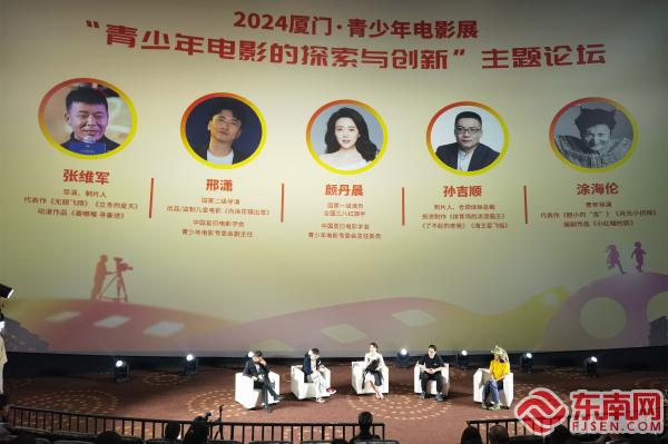 主题论坛上嘉宾们激情畅谈(东南网记者 刘玮 摄) 围绕“青少年电影题材的探索与创新”,2024厦门·青少年电影展青少年电影论坛在开幕式上如期举行。本次受邀参加论坛嘉宾的有《立冬的夏天》导演张维军,国家二级导演、中国夏衍电影学会青少年电影专委会副主任邢潇,国家一级演员、全国三八红旗手、中国夏衍电影学会青少年电影专委会主任委员颜丹晨,《了不起的老爸》制片人、仓颉体娱总裁孙吉顺及《胆小的“龙”》的青年导演涂海伦。 论坛内容涵盖了青少年电影内容与制作的新变、挑战及未来,并就是否需要、如何坚持做影片的市场化类型化,以及如何解决青少年电影面临的剧本难等问题展开了更深层次的探讨。关注观众需求,加强内容创新与社会事件的结合,认识到现代青少年在行为和思维上的独特性,深入体验,同时不断提升对于青少年电影内容、制作的要求,从而让更多且优秀的青少年电影作品被看见。 本次论坛以“青少年电影题材的探索与创新”为主题,邀请有导演、演员、编剧、制片等业内代表,从不同的维度,参与论坛主题的讨论,也获得了诸多外部人士的关注,共同为青少年电影的发展献计献策。 从需求出发,回归内容,再从源头打造精品作品,本届2024厦门·青少年电影展新增青少年电影剧本研讨会环节。经厦门青少年电影展与厦门影视剧本中心共同选取的青少年电影题材剧本《共享爸爸APP》,在经过几番研讨后,正式由厦门青少年电影展、厦门影视剧本中心同《共享爸爸APP》原创编剧肖金凤在开幕式现场完成签约。 2024厦门·青少年电影剧本的签约,为厦门青少年电影展未来推广出更多优秀的青少年电影剧本奠定了基础。