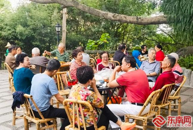 每逢周六,厦门的大小“讲古仙”们便会用亲切的乡音,讲述老城故事,传承古早韵律。台下,市民们围坐在“茶桌仔”旁,品着香茗,观看节目,惬意非常。