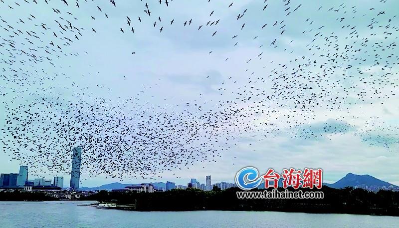 东南网11月20日讯(海峡导报记者 康泽辉 文/图)数千只鸬鹚鸟在空中翱翔,飞出了“黑云压境”的既视感。是的,厦门秋冬的“顶流”——冬候鸟鸬鹚鸟来了。 昨日上午,记者在厦门园博苑抓拍到了数千只鸬鹚鸟翱翔捕食的盛况。黑压压的“大军”,时而翩翩起舞,时而觅食嬉戏,时而盘旋天际,在杏林湾上映下别样风景。 其实,早在数天前,厦门就有观鸟爱好者陆续观察到鸬鹚鸟飞抵厦门的画面。不过,园博苑工作人员告诉记者,先期到访园博苑的鸬鹚鸟大概只有百余只,算是“先头部队”。 而随着近来气温下降,飞抵厦门的鸬鹚鸟日益增加。工作人员介绍,昨日在园博苑群飞捕食的鸬鹚鸟,估摸着一两千只,和巅峰时期的万只左右的数量仍有较大差距。这一波鸬鹚鸟算第一波主力,按照往年观察经验,鸬鹚鸟“大部队”还将陆续赶来。 |