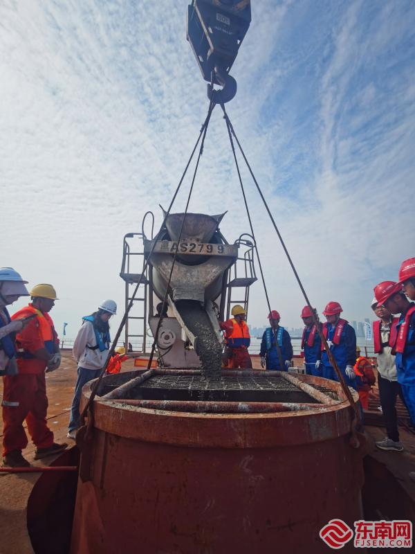 最后一车混凝土灌入桩孔内(东南网记者 刘玮 摄) 东南网12月2日讯(本网记者 刘玮 李奇)随着最后一车混凝土于12月2日11时30分灌入桩孔内,标志着厦金大桥(厦门段)项目刘五店航道桥(悬索桥)东主塔桩基施工全部完成。这一里程碑事件预示着大桥建设正式进入水上施工新阶段,为福建省内最大跨径桥梁的建成奠定了坚实基础。 厦金大桥(厦门段)项目作为福建省重点工程,由中交一公局集团参建的A1标段全长3.978公里,主要建设内容包括刘五店航道桥东锚碇、东主塔。刘五店航道桥全长1948米,索塔高约178米,主跨长928米,是福建省第一座离岸式海中悬索桥,其索塔呈“门”字造型,寓意“一桥连两门,厦金一家亲”。 东主塔桩基施工的完成,是项目团队历经4个月的辛勤工作和精心组织的结果。施工过程中,项目团队克服了地质条件复杂、岩石硬度高达160兆帕等难题,创新搭建海上大型拌和站,确保了桩基混凝土浇筑施工的连续稳定。通过优化施工组织方案,合理调配资源,投入6台旋挖钻机24小时不间断施工,高效率推进建设任务。中交一公局集团厦金大桥(厦门段)项目东主塔施工现场负责人左佑臣告诉记者:“刘五店航道桥海上交通组织难度大,地质结构复杂,为此施工方采用双护筒施工工艺,引进钛钨合金钻头,解决了施工难度问题。东主塔桩基施工完成后,下一步重点就是承台基础,计划完成工期是在2025年年底。” |