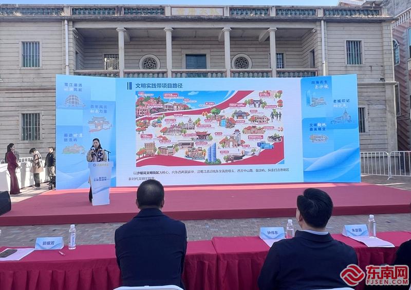 思明区“风潮共海生”新时代文明实践带正式发布。(东南网记者 卢超颖 摄) 东南网12月20日讯(本网记者 卢超颖 李奇)红日从海面上缓缓升起,刺破朝霞,清晨第一缕阳光唤醒一片南洋风格的老街,这里是厦门中山路历史文化街区。在这一带,有中国最早对外营业的邮局、福建省首家外资酒店、全国首条直通大海的商业街……鹭江右岸见证了近代思明人勇立潮头。如今,依托这条著名的历史文化街区,思明区打造“鹭江潮涌·国潮风起”文明实践新场景,和其他五大主题实践场景一起,共同组成了思明区“风潮共海生”新时代文明实践带。 20日上午,风潮共海生——思明区新时代文明实践带发布活动在厦门市思明区黄厝塔头举行。该项目包含“鹭江潮涌·国潮风起”“百年风云·红色力量”“循迹世遗·鼓浪屿”“向海而生·玉沙坡”“老城印记·烟火气”“文明新风·最美蝶变”等六大文明实践新场景。 思明区以沙坡尾文明街区为核心,向东西两翼延伸,西至中山路、鼓浪屿,东至胡里山炮台、黄厝塔头,围绕鹭江两岸探索打造“风潮共海生”思明区新时代文明实践带。