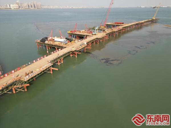 海沧鳌冠大道开始“出海” 鳌冠特大桥首根海上工程桩开钻