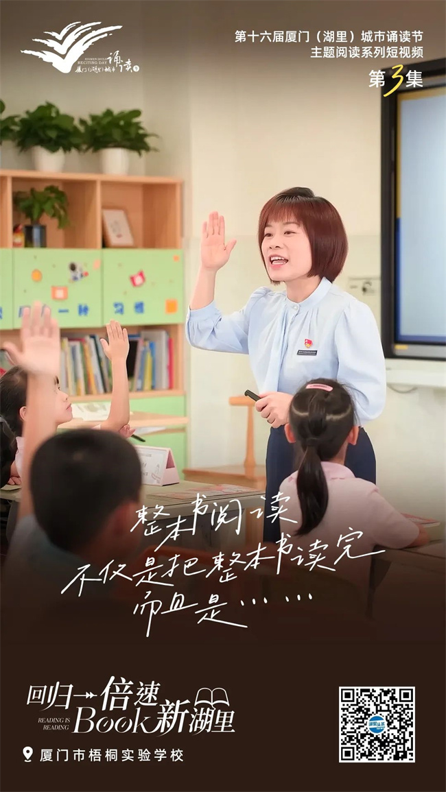 第三集 柯晓珊:她是带领孩子完整阅读的导游 在许多人看来,柯晓珊老师如一位辛勤的园丁,用阅读的清泉浇灌着每一朵求知的花朵,在语文阅读的天地里留下了一串串足迹。在从教的十六年里,她不仅是学生知识的引路人,更是阅读的点灯者。她是全国百班千人助理导师、高级儿童阅读指导师,更是湖里区作家协会的一员,曾主编《名家笔下的老厦门》。 在教学舞台上,柯晓珊老师倡导“整本书阅读”,希望孩子们从更整体、更高维度的视角看待书籍。