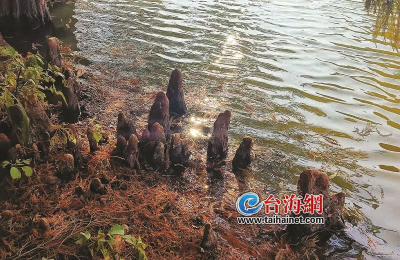 落羽杉用来辅助呼吸的气生根钻出地面 它在地球上住了3000万年 最近在厦门“红”出圈 一年四季会变色 “小可爱”就是它的根 依水而立、红叶翩翩、层林尽染…… 东南网1月13日讯(海峡导报记者 江小聪 陈婧琳 文/图)3000万年前,在北美洲和欧亚大陆北部广袤土地上的落羽杉,或许从未料到,在遥远的未来,它会摇身一变,成为备受瞩目的“网红大咖”。 当冬日的暖阳洒向大地,鹭岛的山林边、湖畔旁,落羽杉的叶片渐渐褪去翠绿,换上热情似火的红装,从树梢到树根,层层叠叠的红晕如同火焰在枝头跳跃,又似晚霞在林间流淌。 落羽杉红了,鹭岛“红了”!市民游客纷至沓来,共同感受3000万年前树种绽放的新生机…… “网红”落羽杉与厦门的故事 红叶传情落羽杉与鹭岛如何结缘? 在厦门,落羽杉的踪迹日益广泛,岛内外皆可见其绰约风姿。而探寻其最早的种植地,厦门园林植物园百花厅当仁不让。这里是厦门最早少量引种的落羽杉种植地,如今园内仍有其零散分布之影。 南湖公园亦是落羽杉在厦门的“元老级”种植地之一。厦门园林博览苑主任张万旗(原南湖公园管理处主任)回忆道:“早在上世纪90年代末,南湖公园就有种植落羽杉,不过只有寥寥数棵。” 他告诉导报记者,2003年,他到南湖公园工作后,听闻忠仑苗圃(现忠仑公园)有落羽杉树苗,他果断决策,申请一批落羽杉树苗移植至南湖公园,形成了如今的种植规模。 彼时,园艺专业出身的他,深知落羽杉会在季节更替中呈现出绚丽的叶片色彩变化,非常适宜在厦门生长,也因为在长江流域看到过成林落羽杉的壮美景观。所以,当时,他满怀信心地对其他工作人员说:“十年之后,这里必将成为一道亮丽风景线。” 岁月见证,南湖公园的落羽杉不负所望,如今已成功晋升为市民游客趋之若鹜的网红打卡点,吸引着无数人前来欣赏其独特的美。 |