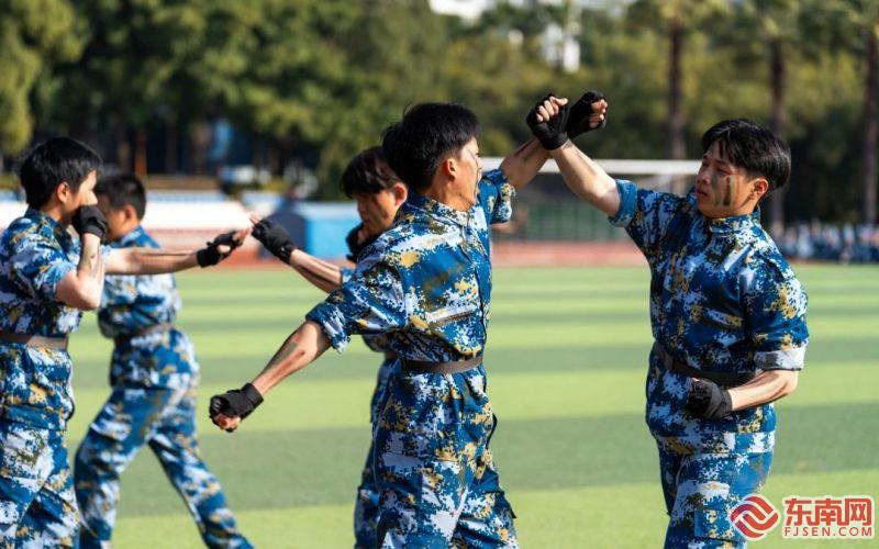 升国旗仪式(厦门工学院供图) 东南网1月18日讯(本网记者 李霖 通讯员 高敏)1月17日上午,厦门工学院2024级学生军训总结表彰大会举办。该校2024级全体学生在一号运动场集结,点燃军训超“燃”时刻。 大会在升国旗、奏唱国歌仪式中拉开帷幕。大会表彰了先进连队、先进排、优秀教官等。“明志、博学、修身、力行”“立德树人,以文化人”“10、9、8”……现场还举办了军训汇报演出,各连队方阵以整齐划一的步伐,昂首阔步走过主席台,他们身姿挺拔,目光坚毅,口号铿锵有力,展现出新时代大学生经过军训锤炼后的飒爽英姿与蓬勃朝气。 随后,格斗术、刺杀操、匕首操、持枪战术等轮番上场,学生们目光如炬,动作刚劲有力、气势如虹,展现了属于自己的高燃时刻。“听党指挥,能打胜仗,作风优良,一二三四,一二三四!”一声声响亮的口号,喊出了厦工学子的热血青春,将现场气氛推向高潮。 据悉,在过去的14天里,该校2024级3098名学生参与了军训。厦门工学院副董事长、执行校长李雄虎表示,军训让学生们提高了思想政治觉悟、激发了爱国热情、增强了国防安全意识,同时也锻炼了体魄、增强了体质、磨炼了意志。“希望大家将军训中所收获的成果转化为强大的学习生活动力,带着对未来的憧憬与希望继续在大学的舞台上追逐梦想,书写属于自己的青春华章,为学校的发展、为社会的进步、国家的繁荣贡献力量!”李雄虎说。