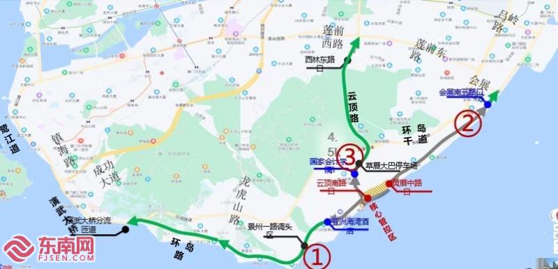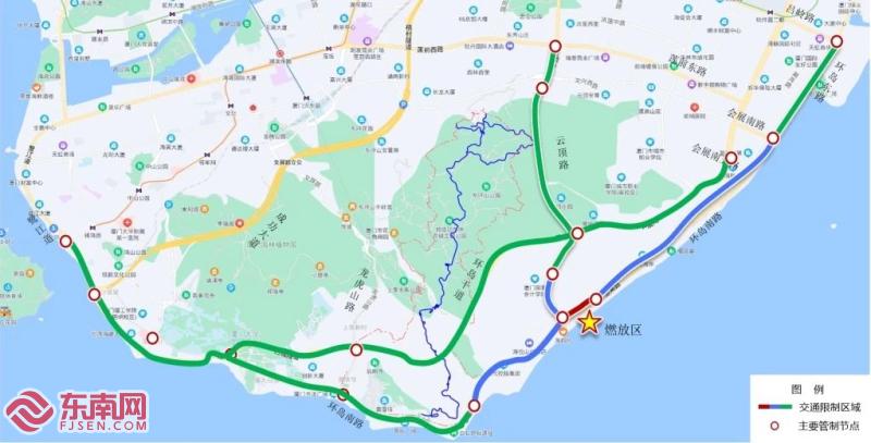交通管制示意图(厦门交警供图) 东南网1月26日讯(本网记者 刘玮)今日,记者从厦门市公安局交通警察支队了解到,2025年1月29日(农历正月初一)20:00-20:30,2025年海峡两岸春节焰火晚会将在厦门环岛南路黄厝沙滩举行。为保障活动期间的交通安全和秩序,厦门市公安局交通警察支队提前发布交通限行措施,并倡议广大市民和游客选择绿色出行。交通限行措施如下: 核心区域封闭 自1月29日18时起,环岛南路云顶南路口至黄厝中路口段将作为焰火燃放控制区域双向封闭,禁止车辆和行人通行,仅允许执行任务的警车、消防车、救护车、工程救险车等特种车辆通行。 周边道路管控 自1月29日18时起,环岛南路太阳湾路口至云顶南路口段、云顶南路国家会计学院路口至环岛南路口段、环岛南路黄厝中路口以北段、环岛东路会展南路口以南段将禁止车辆驶入,但允许车辆驶出。持有《2025年海峡两岸春节焰火晚会车辆通行证》的车辆、公交车及执行任务的特种车辆除外。 外围道路限行 自1月29日14时起,演武大桥、环岛南路、环岛东路吕岭路口以南段、云顶南路、云顶隧道、云顶中路西林东路口至莲前西路口段、环岛干道演武大桥路口至前埔南路口段将视情启动交通限行措施,禁止机动车驶入,但允许机动车驶出。同样,持有《2025年海峡两岸春节焰火晚会车辆通行证》的车辆、公交车及执行任务的特种车辆除外。