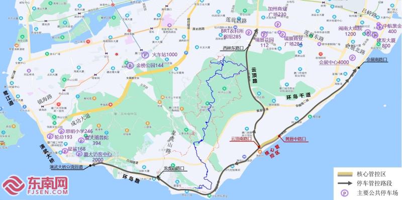 社会车辆停车导览示意图(厦门交警供图) 社会车辆停车安排 活动当天,环岛路(白城至会展南路段)及云顶路(西林东路口以南段)沿线公共停车场将封闭。市民和游客可选择以下外围停车场停车: 云顶中路瑞景片区周边停车场(加州广场、瑞景广场、蔡塘广场):自驾观众可停车后换乘BRT或步行至洪文二路公交站乘坐临3路公交车前往观看区。 厦门国际会展中心周边停车区(会展中心、建发大厦、特房波特曼、君尚广场):车辆可通过前埔北路、展鸿路或会展路停车后换乘前往焰火燃放点。 鹭江道中山路片区周边停车区(和平码头、中华城、第一广场):自驾观众可停车后乘坐临2路公交车至溪头下公交站前往观看区。 厦大片区(厦大访客中心、软件园一期北区):社会车辆可停车后换乘临2路公交车至溪头下公交站抵达观看区。