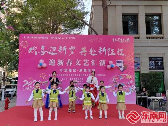 文艺汇演(金山街道供图) 东南网1月30日讯(本网记者 夏菁 通讯员 孙冰梅)精彩节目、年货节、送春联、爱心义诊、走访慰问……近日,厦门市湖里区金山街道各社区“各显神通”,为春节增添了浓浓的“年味”。 湖边社区与湖边花园幼儿园、地铁物业联合举办“欢喜迎新岁,共赴新征程”迎新春文艺汇演暨社区生活节活动。活动不仅有文艺汇演,还有春联送祝福、亲子互动游戏、知识宣传、年货干货、企业福利、便民服务、居家清洁等,让人应接不暇。 在高林居住区一里幸福广场,金安社区举办“春满人间 文明新风年”年货集市活动。活动现场精彩纷呈,腰鼓表演、公益集市、送春联、特惠年货活动轮番上阵,吸引大批社区居民、爱心商家、志愿者参与其中,共同感受新春喜庆氛围。 五通社区举办“迎新春·写春联·送祝福”活动,通过送春联、爱心义诊、惠民服务等,将新春的祝福与关怀送到居民身边,让大家共同开启幸福美好的新一年。