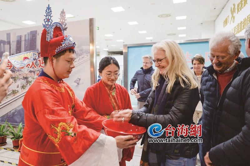 和木偶合个影 东南网2月19日讯(海峡导报记者 崔晓旭 郑丽金/文 沈威/图 通讯员通讯员 付佳萍 刘楷)当爵士遇上南音,会碰撞出怎样的火花?昨天傍晚,厦门国际邮轮母港又一次迎来重磅级国际邮轮——超五星级豪华邮轮“欧罗巴2号”(EUROPA 2)首次靠泊厦门港。该航次带来近500名国际游客,其中大部分来自德国、奥地利和瑞士,将在厦停靠两天一夜。 “欧罗巴2”号邮轮长225.38米,宽29.9米,总吨位42830余吨,最多可载旅客544人、船员416人,具有超五星级的服务和丰富的休闲设施,被誉为“邮轮界的劳斯莱斯”,是专为德语市场打造的奢华邮轮。近500名国际游客将从邮轮开启无缝衔接的闽南文化之旅,感受厦门南普陀寺的禅意、集美红砖古厝的风情、泉州开元寺的古韵以及华安土楼的奇观,浸润在中华多元文化交融的立体图景中。 为了更好地向国际游客展现多元文化交融的魅力,厦门市文旅局、厦门国际邮轮母港准备了欢迎仪式。候船大厅内,非遗南音的婉转悠扬,爵士乐的轻松惬意,传统文化与现代艺术完美融合,厦门市南乐团与迷待音乐合作的《直入花园》,用传统南音的悠扬旋律搭配现代爵士的动感节奏,令下船的国际游客耳目一新,这种创新的融合形式不仅让非遗焕发出新的活力,也吸引了更多年轻人的关注。除了《直入花园》,还有闽南传统木偶戏。一旁的非遗漆扇互动体验区同样热闹非凡,吸引不少外国游客现场参与漆扇制作。 除“欧罗巴2号”(EU-ROPA 2)外,本年度厦门国际邮轮母港还将迎来“芮吉塔号”(Regatta)、“招商伊敦号”、“威斯特丹号”(WEST-ERDAM)、“七海探险家号”(Seven Seas Explorer)等多艘世界豪华邮轮到访,进一步提升厦门国际邮轮母港的国际知名度,扩大“国际朋友圈”。据悉,根据新一年邮轮航线布局,2025年厦门国际邮轮母港全年预计运营近30航次出入境邮轮。 |