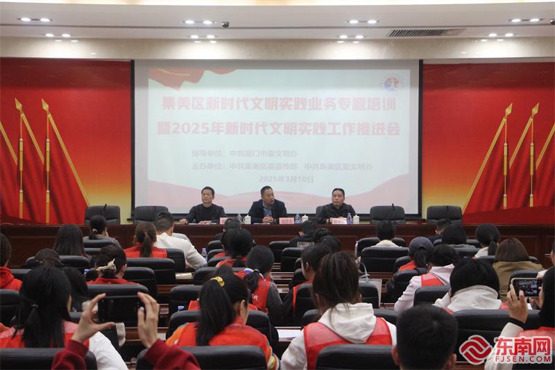 会议现场(东南网记者 李霖 摄) 厦门市委文明办领导参会指导,集美区各镇(街)宣委及宣传干事、村居文明实践站站长及经办人、集美区新时代文明实践中心(所、站)工作人员等共200余人参加会议。 “统筹推动文明培育、文明实践、文明创建,抓好精神文明建设,这需要全社会的共同努力,而在座各位更是主力军、中坚力量。”在集美区精神文明建设推进会上,集美区委文明办主任向与会人员阐述了精神文明建设的重要意义,强调抓好精神文明建设要立足群众需求、挖掘自身禀赋、整合阵地资源,坚持“一盘棋”思想、“一张网”统筹,挖掘典型、选树标杆、挖掘亮点、注重宣传、打造品牌,不断提升集美区居民文明素养和社会文明程度。 “近年来,集美区立足辖区实际,多点发力,充分整合资源,在完善阵地建设、创新工作机制、整合各方资源、深化文明实践五项工作内容等方面取得良好成效。”集美区委宣传部三级调研员梁忠阳总结了集美区文明实践工作经验成果,也从经验学习与本土优势结合、理论宣讲与生活实践融合、内部挖潜与外部联动融合、品牌培育与在地文化融合、文明实践与村居充分融合五个方面对2025年集美区文明实践工作提出了具体要求。 活动邀请厦门市委文明办文明实践处科长郭小辉对下阶段新时代文明实践重点工作进行了安排部署。他还结合厦门市各区文明实践站活动开展情况相关数据,从持续做好“文明实践+”工作,推动阵地优化整合、推动资源优化整合、丰富拓展活动内容、建立健全激励机制等方面展开分析,助力集美区把文明实践各项工作落细、落实。 为进一步提高集美区新时代文明实践中心(所、站)工作水平,全面提升全区文明实践管理员工作能力,推进新时代文明实践工作提质增效,活动还邀请厦门市新时代文明实践指导中心工作人员对厦门文明实践综合管理平台的功能模块、操作流程、注意事项等进行了详细说明、实操演示,并就此前反馈的常见问题开展着重分析、答疑解惑,实现数字赋能文明实践工作提质升级,朝着规范化、精细化方向稳步迈进。 当天还举办了集美区文明实践工作交流会,并组织各新时代文明实践所、站长围绕厦门市精神文明建设智慧平台操作开展培训。 “这既是一次业务提升的学习会,也是一次明确方向的动员会。”集美区新时代文明实践中心(所、站)工作人员纷纷表示,此次会议既为做好当前及今后一个时期工作明晰了方向、划清了重点,又有贴合实际的培训指南,具有很强的指导性和操作性。他们将以“干一件事成一件事”的决心,把部署转化为实效,答好“以文明实践助推基层治理现代化”的时代答卷,奋力打造文明实践“集美模式”,筑牢精神文明建设新高地。 |