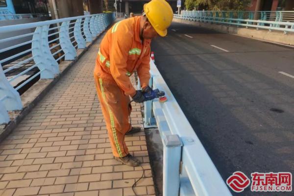 厦门集美公路部门为桥梁护栏“换新装” 提升城市形象与安全