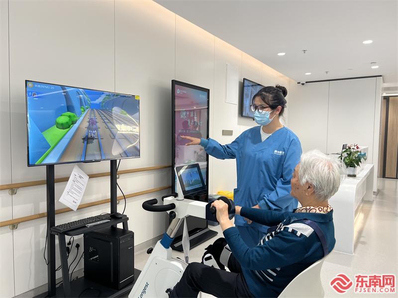 医务人员指导老人开展锻炼(东南网记者 李霖 摄)