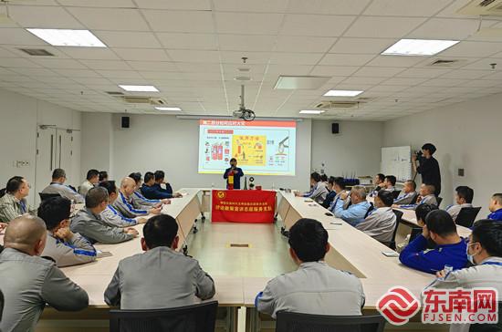 宣讲员演示灭火器的正确使用方法(东南网记者 夏菁 摄) 东南网3月26日讯(本网记者 夏菁 通讯员 刘子轩)近日,厦门市翔安区委文明办联合区消防救援大队探索打造“小蓝来讲理”主题宣讲品牌。3月25日,“小蓝来讲理”翔安区新时代文明实践消防理论宣讲系列活动正式开启,宣讲员走进电气硝子玻璃(厦门)有限公司,为企业员工带来了一场生动且实用的消防知识盛宴。 活动中,宣讲员结合火灾事故案例,通过以案说法、发放消防安全宣传手册,提醒职工要时刻将消防安全铭记于心。同时,结合企业工作实际,宣讲员以灭火器、室内消防设施为切入点,全面系统地为员工宣讲火灾逃生常识、如何正确使用消防灭火设施等知识,提醒职工要加强日常的火灾隐患排查工作。 为了提升企业员工的安全意识与应急能力,现场还让企业员工亲身体验消防器材操作,通过模拟火灾发生场景,实地演练了火盆灭火以及水带水枪等消防器材的使用方法,强化员工的火灾防控和应急处置能力。