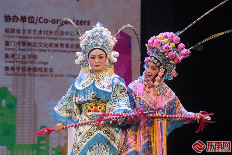 人偶戏《吉祥如意》(东南网记者 李霖 摄) 东南网3月27日讯(本网记者 李霖)3月27日晚,“中泰金禧嘉年华——2025中泰文艺展演”在厦门集美拉开帷幕,中泰两国艺术家同台展示艺术精粹,携手开启文化经贸交流盛会。 以庆祝中泰建交50周年为契机,“中泰金禧嘉年华”系列活动通过文艺展演、经贸合作、非遗市集等多元形式,献礼 “中泰友谊金色五十年”,架起两国文化交流与民心相通的桥梁。 同台“共舞” 开启文明对话新篇章 文艺展演汇集两国非遗艺术精粹,拉开了此次“中泰金禧嘉年华”帷幕,谱写文明交融的华章。现场,泰国艺术家带来《吉祥如意》人偶戏、长鼓舞、阿育陀耶武术等传统节目,展现泰国宫廷艺术的典雅与民间文化的奔放,勾勒出一幅充满异域风情的艺术画卷。其中,泰国国家级非遗舞蹈《安斯丽玛雅》融合阿拉伯文化元素,火箭舞则以欢快节奏演绎农耕祈福场景,传递泰国人民对生活的热爱。 中方艺术家同样献上文化瑰宝,更凸显闽南风情。“希望通过歌仔戏这一戏曲表达,让更多人感受到闽南戏曲文化的魅力。”厦门歌仔说唱省级代表性传承人张月萍激动地说道。当晚,她带来歌仔戏《樊梨花与薛丁山》,以婉转唱腔讲述古老的爱情故事。 此外,厦门市非遗项目布袋戏代表性传承人黄月娇领衔的布袋木偶戏《多彩闽南》创新融合戏曲身段与木偶变脸技艺,赋予了布袋木偶鲜活的生命力,赢得满堂喝彩;民乐合奏《茉莉花》则通过多种乐器的组合,以宏大、丰富的音乐旋律,展现江南诗意。 现场还穿插知识问答环节,观众在轻松愉快的氛围中了解泰国风土人情,促进民相亲、心相通。 经贸合作 架起共赢发展新桥梁 以“文化搭台、经贸唱戏”为理念,“中泰金禧嘉年华”系列活动涵盖三大主题活动。除了此次中泰文艺展演外,还将举办经贸对接、创意市集,为中泰“金色五十年”注入更多活力与期待。 4月2日,“中泰经贸对接会”将于集美区国际合作中心举行,泰国投资促进委员会(BOI)、工业园区及律所代表将向中企推介泰国投资机遇;4月5日至7日,“中泰风情集”将在集美IOI商城亮相,汇聚泰国特色商品与中国非遗产品,打造沉浸式文化消费体验,编织民心相亲的新纽带。