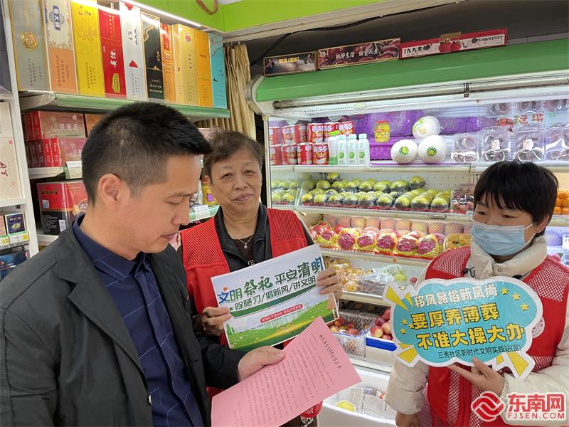 志愿者宣传文明祭扫(三秀社区新时代文明实践站供图) 倡导文明祭扫 共享绿色清明 “丧葬陋习败风气,孝心孝道尽心力,厚养薄葬有道理,文明新风扬正气……”3月30日,双岭村巷口社戏台传出阵阵清脆的快板声,双岭村快板说唱团用通俗易懂的语言、朗朗上口的节奏,宣传文明祭祀理念,唱响乡村文明新旋律。 当天,双岭村新时代文明实践站围绕移风易俗开展清明节主题活动。除了有原创文明殡葬主题快板节目,村民纷纷陆续登台,以小品、演讲等丰富形式,介绍清明的由来与习俗,分享优秀家风故事。志愿者还挨家挨户宣传文明祭祀,呼吁村民告别传统祭扫方式,破除旧俗陋习。 “绿色清明 文明祭扫”“破祭祀陋习 树文明新风”……日前,叶厝社区新时代文明实践站举办文明祭扫宣传活动,社区儿童化身文明祭扫“发言人”。孩子们拿起画笔、剪刀,用简短的标语、生动的绘画装点宣传海报,弘扬安全、绿色、文明、节俭祭祀新风尚。当天,他们还手捧亲手制作的海报,走街入户分发文明祭扫宣传单,获得了居民的频频点赞支持。 植树寄哀思,为清明添绿。三秀社区新时代文明实践站举办“我们的节日·清明”植树活动。挖坑、植树、浇水、施肥……现场,在园艺师的带领下,亲子家庭学习园艺知识,增强绿色环保理念,还亲手栽植树木,手写纪念卡片,以表达对先人的怀念和追思。“希望通过清明植树,将传统的祭祀文化与现代的环保理念相结合,赋予节日新的内涵,展现人与自然和谐共生的美好愿景。”三秀社区新时代文明实践站社工洪月英表示。 |