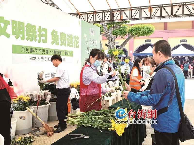 清明节,厦门10万人次现场祭扫 4万多支菊花免费提供,还有咸稀饭、茶水等免费供应