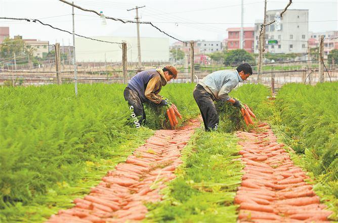 4月,翔安胡萝卜收获季进入尾声。在凤翔街道下许社区,采摘工人在田间地头忙碌,新鲜的胡萝卜被摘下运往厦门呈林农业开发有限公司的生产车间。在这里的流水线上,一袋袋胡萝卜依次经过清洗、预冷、分拣等工序,按照体型大小被整齐装箱冷藏,即将发往各地。 “与往年相比,今年胡萝卜行情十分可观,亩产值能达到1万元左右。”厦门呈林农业开发有限公司负责人蔡志龙向记者介绍,每年1月-5月的冬春季,是胡萝卜收获的黄金季节,今年农历正月更是迎来了收获高峰期。下许社区以种植胡萝卜等经济作物闻名,其胡萝卜不仅在国内市场备受青睐,还大量出口到日韩、东南亚、中东等地。 厦门日报记者 张奇辉 曾嫣艳 摄影报道 |