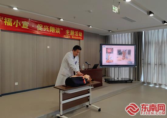 借助人体模型演示心肺复苏(东南网记者 夏菁 摄)