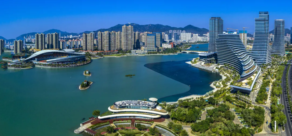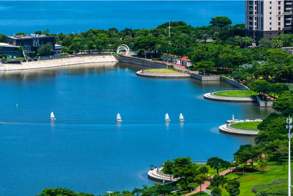 左手远眺对岸双子塔 右手触摸天语舟气象公园 俯瞰整座城的湖海相拥