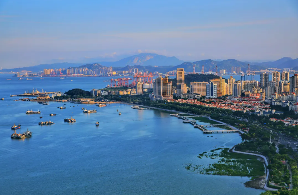 从嵩屿码头出发 租辆单车沿海沧大道骑行 左手是CBD的摩登天际线 右手是厦门西海域的湛蓝