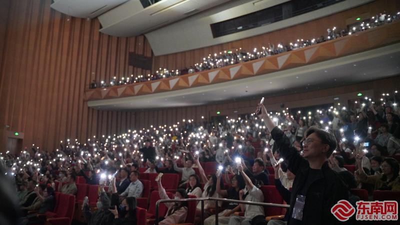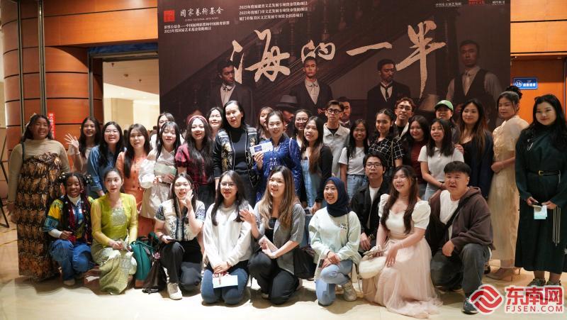现场观众与舞剧海报合影留念(东南网记者 柳绿 摄) 值得一提的是,此次演出选址厦门嘉庚剧院别具意义。作为嘉庚精神的发源地,厦门观众将有机会在这座以"华侨旗帜"命名的剧院里,感受艺术与历史的深度共鸣。演出期间还将举办主创见面会,让观众更深入地理解嘉庚精神的内涵。 演出现场气氛热烈,观众反响强烈。当大幕落下时,全场响起经久不息的掌声,演员们两次返场谢幕致意。演出结束后,现场还特别安排了“星光大合影”环节,演员与观众共同记录这一感动时刻。华侨大学华文学院的学生们观演后深受触动。一位学生动情地表示:“看到剧中陈嘉庚先生倾尽家产兴办教育的感人故事,才真正明白今天优越的教学条件来之不易。” 此次厦门站演出,不仅是一场艺术盛宴,更是一次跨越时空的文化寻根——当“嘉庚精神”以舞蹈之名在故乡激荡,这座城与这群人的故事,终将在新时代的浪潮中续写永恒。 大型原创舞剧《海的一半》由中华全国归国华侨联合会文化交流部指导,中国东方演艺集团有限公司、厦门福南堂文化产业有限公司、凤凰都市文化传播(北京)有限公司共同出品,厦门市集美区文学艺术界联合会联合出品。 |