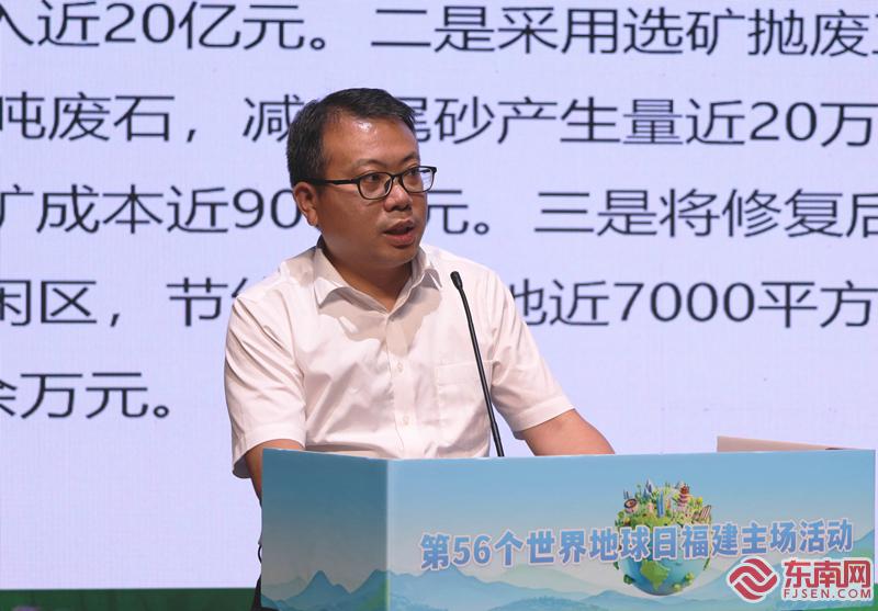 古田县自然资源局党组成员、副局长蔡明威(许诗涵 摄) 生态修复 绿色矿山“点石成金” 开发矿产和环境保护如何兼顾,一直是个两难问题。当天,古田县自然资源局党组成员、副局长蔡明威以“淘金之行 不改绿美容颜”为主题,分享了福建古田天宝矿业有限公司西朝钼矿生态修复案例,讲述了该公司通过技术创新与生态修复同步,探索出生态保护与资源开发的双赢路径,实现“淘金不毁绿”,为矿山可持续发展提供实践范例的经验故事。 据悉,天宝矿业有限公司西朝钼矿位于古田县凤埔乡。矿山的生产对原有的地形地貌、水环境等产生影响。为打造“绿色矿山”,天宝矿业以技术驱动绿色转型,投资3000多万元建成省内首个尾砂胶结充填系统,累计完成胶结充填100万立方米、全尾砂充填183万立方米,减少地表塌陷风险,矿石回采率显著提升,累计增收近20亿元。 天宝矿业长期与科研机构合作,每年投入超总产值2%用于技改,推动矿山集约化、智能化转型。该企业还将废石100%用于充填或建材加工,选矿废水95%循环利用,年节约成本超千万元,修复排渣场建成生活休闲区,节约用地7000平方米。 坚持“边开采,边治理”原则,天宝矿业投入专项资金治理尾矿库、排渣场等区域,修复后矿区植被覆盖率达90%以上。如今,古田西朝钼矿芳草丛生,绿意盎然。2017年,古田西朝钼矿被评为国家级绿色矿山;2021年被福建省自然资源厅授予“福建省绿色矿山建设示范单位”。 共建生态福建,共享绿色未来。四大案例呈现了福建在生态治理、资源保护与绿色转型中的创新探索与丰硕成果。福建省自然资源厅相关负责人表示,未来,将深化跨区域协作,推广“厦门实践”系统治理经验、福州三维数字治理模式、泉州土地综合整治机制和古田绿色矿山标准,加快完善落实绿水青山就是金山银山理念的体制机制,统筹推进山水林田湖草沙一体化保护和系统治理,构建从山顶到海洋的保护治理大格局,为生态文明建设贡献福建智慧,谱写人与自然和谐共生的美丽中国建设福建篇章。