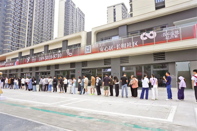 2000多人排队!厦门岛内最大保障性租赁住房项目开业,拎包即住!就在湖里! 昨日,岛内最大的保障性租赁住房——安心居公寓古地石社区开放意向登记为新市民提供住房保障。 本次共计推出800套房源,截至昨晚预定签约成交近600套。项目现场吸引了2000多人排队。“这里居住环境很合心意,周边很繁华,下班回来还能去航空古地石广场小酌一杯。”李舒芮是来厦门半年的新市民,她在出门旅游前特地前来排队看房,并选到了心仪的套房。