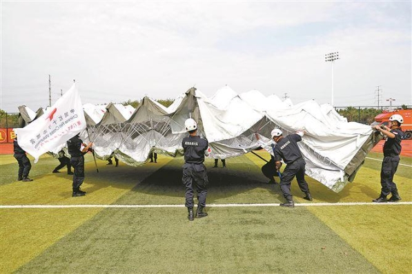 演练集结了国防动员专业保障队伍、新域新质企业、志愿者等开展多项实战演练。 厦门日报讯(文/图 记者 蔡镇金 应洁 通讯员 陈黎蓉)昨日下午,伴随防空警报划破厦门长空,一场以战时空袭为背景的城市防护救援行动演练在厦门技师学院同步展开。演练集结了国防动员专业保障队伍、新域新质企业、志愿者及在校师生等约500人,开展了人员紧急疏散、重要目标防护、伤员救护等多个项目实战演练,全面检验城市在复杂情境下的防护救援能力。 15时整,全市试鸣防空警报。随着预先警报拉响,演练启动,学院师生在工作人员指引下快速、有序撤离至地下人防工程。演练现场大屏同步直播各区的疏散行动及指挥调度画面。人员就位后,保障小组迅速开展相关工作:宣传组普及国防动员和人防知识,物资组分发生活物资,心理组进行情绪安抚,医疗组对重点人群展开救护。 演练过程中,不明无人机逼近重要目标时,反制分队立即启用地面激光打击系统,精准击落三架无人机,有效展现空防反制能力。 15时10分,空袭警报响起,演练进入目标防护阶段。市红十字会迅速在目标区域搭建野外救护帐篷,设立临时救护点,物资保障分队则在现场建立油料供应点、应急电站和临时物资库,为后续行动提供坚实保障。 演练还模拟了无人机群袭击场景。侦测车发现目标区域遭遇无人机逼近,指挥部迅速调度伪装分队释放烟幕,有效阻断光学和红外侦察,同时启动反制设备驱离来袭无人机群,为重要目标赢得防护时间。 随着解除警报响起,相应的救援行动演练迅速展开。模拟情境中,一名“伤员”在高楼发出求救信号,救援无人机第一时间起飞,迅速抵达目标位置接收伤员。医护人员使用担架车将“伤员”转至野外救护帐篷进行初步治疗,随后转送至后方医院。整个救援流程环环相扣、紧凑高效。 据悉,我市各区昨日均结合防空警报试鸣,组织部分城镇居民、党政机关及企事业单位人员、在校大中小学师生,有针对性地进行紧急疏散行动、疏散掩蔽行动、空袭解除行动演练,进一步提升城市应对突发空袭事件的实战能力。 同步 集美:10万人参与国防演练 厦门日报讯(记者 应洁 通讯员 陈黎蓉)昨日,集美区在灌口镇三社安置房(蔡厝嘉园)开展国防动员演练活动,现场参演人员达500余人。值得一提的是,昨天,集美辖区机关企事业单位、学校师生、社区居民等共有约10万人参与国防演练,全区防空警报器的鸣响率达到了百分之百。 在灌口镇三社安置房(蔡厝嘉园)开展的演练主要围绕“人防机动指挥所演练”“防空袭疏散演练”“民兵专业课目演练”三大训练主题展开。当防空预先警报信号响起,参演人员迅速反应,按照疏散路线有序撤离,前往就近的地下室等人防工程疏散和掩蔽。到达安全区域后,领队人员立即进行人数清点,并组织物资发放、人防宣教,开展心理疏导、自救互救等课目演练。 在消防安全演练中,集美消防大队迅速响应,开展灭火行动演练;在医疗救护演练中,医护人员对伤员进行心肺复苏、伤口包扎等紧急救护;在网络抢修演练中,运营商对损坏线路进行排查修复、开通应急通信网络;民兵应急分队在演练中迅速完成了周边警戒和重要目标的防护任务等。“这样的演练很有必要,能够提升我们在面对突发情况时的自我保护和自救互救能力。”居民李先生说。 |