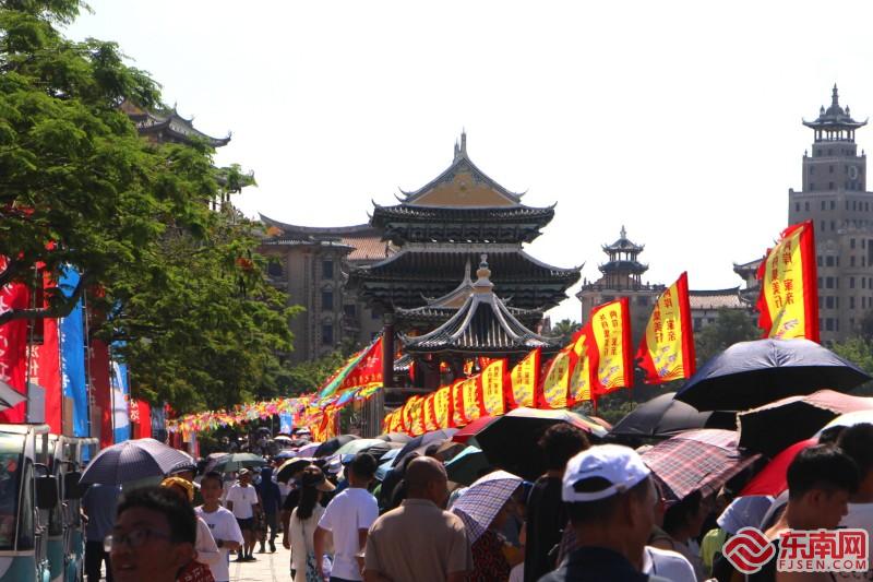 龙舟池沿岸旌旗飘扬、人潮涌动(东南网记者 李霖 摄)