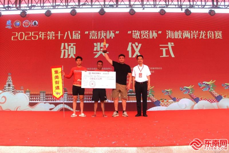 集美街道摘得2025年第十八届“嘉庚杯”海峡两岸龙舟赛桂冠(东南网记者 李霖 摄) 东南网5月18日讯(本网记者 李霖 李奇)劈波斩浪,奋楫争先。5月18日上午,2025年第十八届“嘉庚杯”“敬贤杯”海峡两岸龙舟赛在厦门集美龙舟池落下帷幕。集美街道、集美大学分别夺得“嘉庚杯”“敬贤杯”总冠军。 本届龙舟赛于17日开赛,设置22人龙舟200米和500米直道赛两个项目,分社会男子组和女子组,青少年男子组和女子组四个组别,海峡两岸36支龙舟队竞渡龙舟池。经过一轮轮激烈角逐,共有12支队伍入围总决赛。 总决赛在“敬贤杯”的争夺中拉开帷幕。伴随着清脆的发令声,六支龙舟犹如出水蛟龙、奋勇争先。集美街道、集美大学龙舟队迅速形成“第一梯队”,台北霞海城隍庙、厦门海洋紧随其后。赛程后半段,集美大学龙舟队实现反超并率先冲线。 “嘉庚杯”的比拼同样十分胶着。比赛一开始,集美街道、福州盖山浦下、集美大学三支队伍以强劲的实力迅速抢占领先优势,并紧咬着对手不断上演你追我赶的角逐,将速度与力量之美展现得淋漓尽致。最终,集美街道以近半个身位的优势夺得“嘉庚杯”。 “我们就是为了夺冠而来!”集美街道龙舟队划手陈祥表示,带着队伍去年因故未能参赛的遗憾,此次比赛队员们无论在赛前训练还是比赛场上都更加拼尽全力,“今年拿回属于自己的荣耀。”陈祥坦言,作为集美当地的一支劲旅,除了发挥主场优势,传承嘉庚精神的责任感也助推他们划出更好成绩。 “队员们说冲线之后丢掉桨的那一瞬间很兴奋,非常荣幸能够卫冕冠军。”集美大学龙舟队队长张静奕向记者分享了此次卫冕“敬贤杯”的感受。她表示,赛前特别根据对手们的情况进行了战术调整,但比赛夺冠的关键还是依靠平时严格训练的积累,队伍形成了“老带新”、互帮互助的优良传统,“争取下一届再接再厉”。 自2006年起,集美区举办首届“嘉庚杯”“敬贤杯”海峡两岸龙舟赛以来,这项赛事已经发展成为弘扬嘉庚精神,文体旅融合的品牌活动,同时也是密切海峡两岸民众血脉相连、增进两岸同胞文化认同的重要平台。本届龙舟赛共有36支队伍参赛,其中大陆27支、台湾地区9支。
