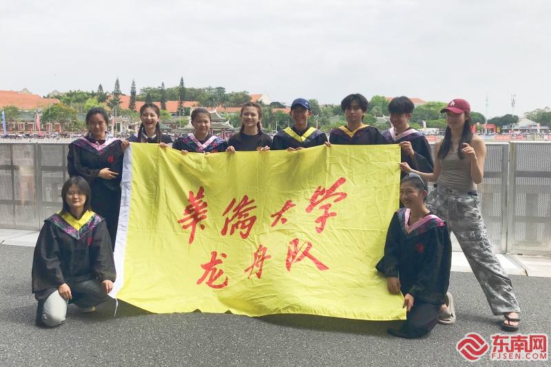 邓恩惠(前排右一)与队友们身着学士服合影留念(东南网记者 李霖 摄) 赛场边的故事 “即便毕业了,我也会把龙舟继续划下去!” “1、2、3,毕业快乐!”18日上午,龙舟池畔,一群身着学士服的身影显得格外抢眼。他们是华侨大学龙舟队今年即将毕业的队员们。“这是我们历来的传统。”华侨大学龙舟队队长表示,每年,海峡两岸龙舟赛都适逢毕业季,龙舟队也将参加此次赛事、在赛场边拍摄毕业照作为特别的纪念,以送别老队员。 华侨大学新闻传播学院大四学生邓恩惠就是即将毕业离队的成员之一。她告诉记者,今年是她第四年参加海峡两岸龙舟赛,队伍获得了200直道竞速赛第三名,“超出了我的预期,拿到了一个让我意想不到的成绩”,也为她这四年的龙舟训练生涯画上了圆满的句点。 邓恩惠来自香港。她告诉记者,一直对传统文化兴趣浓厚的她刚迈入大学校园就进入了龙舟队,尽管训练过程有苦有泪,龙舟竞技的魅力始终感染、鼓舞着她不懈努力。返港期间,她还主动加入了当地的龙舟队伍,也参加了不少比赛。 邓恩惠说,海峡两岸龙舟赛是她龙舟竞赛之旅开始的地方,“即便毕业了,我也会把龙舟继续划下去!”