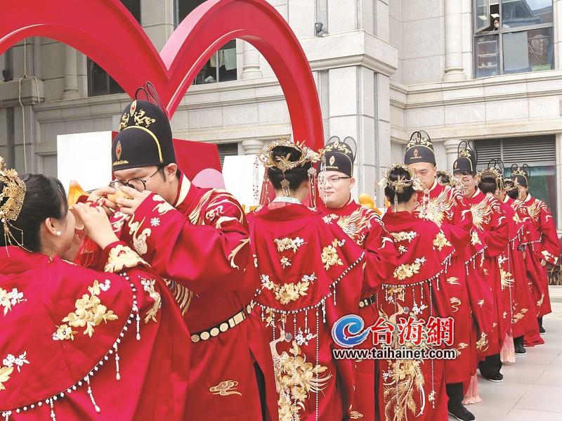 集体颁发结婚证。 东南网5月21日讯(海峡导报记者 钱玲玲 康泽辉/文 常海军 康泽辉/图)昨天是“520”,一个爱意满满的日子,因谐音“我爱你”备受年轻人喜爱,成为了众多新人选择的结婚登记日。厦门结婚登记迎来高峰,各区登记处人气爆棚,众多新人喜获“红本本”。 截至昨日17时,厦门全市共办理结婚登记961对,同比去年增加48%。其中,“全国通办”189对,占全市婚姻登记总量的20%,惠及24个省、自治区、直辖市的当事人。 氛围感拉满 18对新人举行古礼婚典 却扇礼、传毡礼、沃盥礼、合卺礼……昨日上午,着一袭华美汉服,18对新人在集美新城举行的古礼婚典中,许下“执子之手,与子偕老”的美好誓言。“缘起鹭岛·情定集美”,集美区民政局为新人们精心筹划了一场古韵浓浓的集体颁证仪式,让中华千年婚俗文化与现代浪漫简约在此刻完美融合。 昨日早上7点,登记处就早早开门,给第一场集体颁证的新人化妆。“中午也没有休息,一直办到了下午。”工作人员悉心为他们打扮唐制婚服及妆造,把氛围感拉满。 新人们亲手签订婚书,以笔墨传递“独属于中国人的浪漫”,还体验了投壶等传统非遗游戏,并亲手调制香囊,将爱意与期许装入锦缎。“以传统婚俗为载体,融入新时代文明元素。”集美区民政局相关负责人介绍,举办这场别具一格的集体颁证仪式,既是对中华优秀传统文化的传承弘扬,也是践行社会主义核心价值观、推动婚俗改革的生动实践。 据统计,集美区昨日共为268对新人登记结婚,数据较去年“520”翻了整整一倍。 |