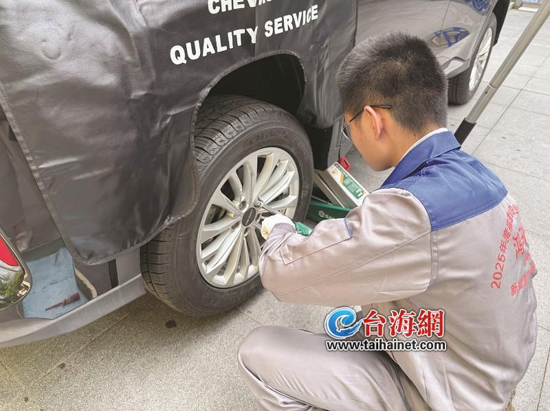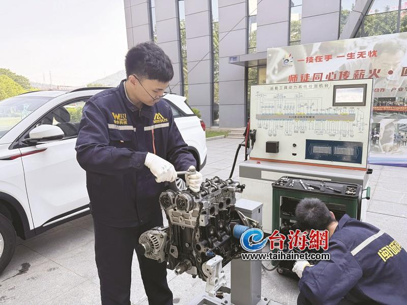 厦门工商旅游学校学生展示发动机的拆装与检测。