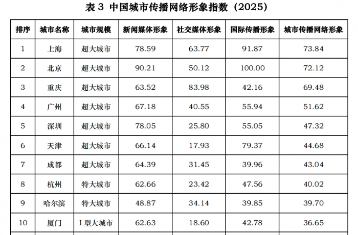 《中国城市网络形象指数报告(2025)》发布!厦门以“高颜值+国际范”长红出圈 5月24日,“中国城市网络形象指数”发布会和中国城市网络形象创新发展论坛在京举办,《中国城市网络形象指数报告(2025)》(以下简称《报告》)正式发布。该《报告》由中国人民大学联合中国传媒大学、中山大学等院校共同编撰,围绕传播、文化、经济、生活、治理五大维度构建评估框架,全景式呈现全国105个大城市的网络形象建设成效。其中,厦门凭借独特优势在传播维度实现“破圈突围”,引发广泛关注。