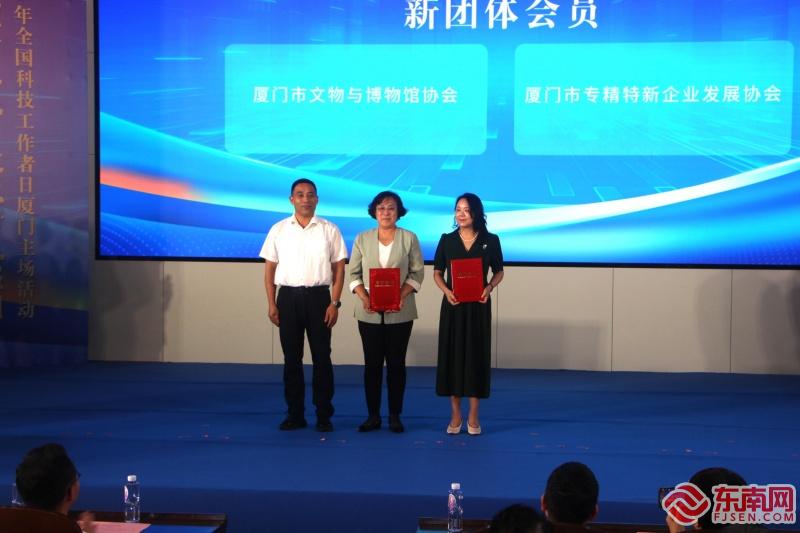 为2家新团体会员单位——厦门市文物与博物馆协会、厦门市专精特新企业发展协会颁发证书(东南网记者 李霖 摄)